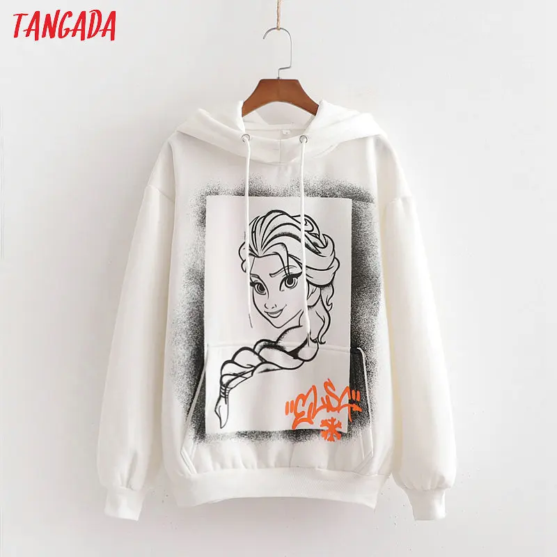 Today i want to review about Tangada women charater print white sweatshirts oversize long sleeve hooded loose pullovers casual f. I uncover this cool product from China Online Store, best manucafturer.