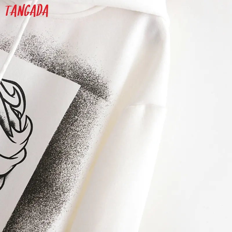Promo Tangada women charater print white sweatshirts oversize long sleeve hooded loose pullovers casual f