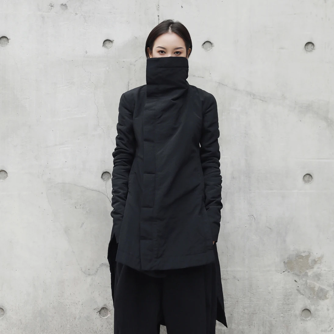 New [EAM] 2020 New Fashion Winter Stand Lead Irregular Long Type Cotton-padded Clothes Loose Coat Solid