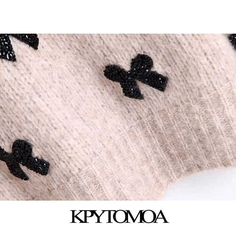 New Vintage Elegant Bow Tie Appliques Knitted Sweater Women 2019 Fashion O Neck Long Sleeve Female Pull