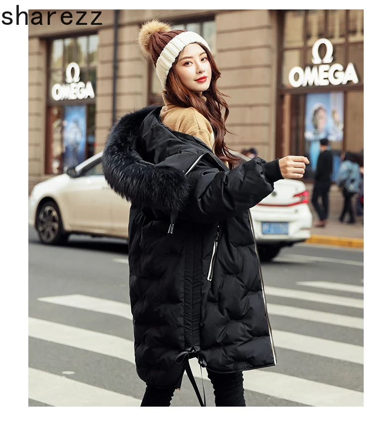 Promo 2019 New Winter Women Big Fur Collar Oversize Down Long Coat Female Thick Warm Hooded White Duck Do