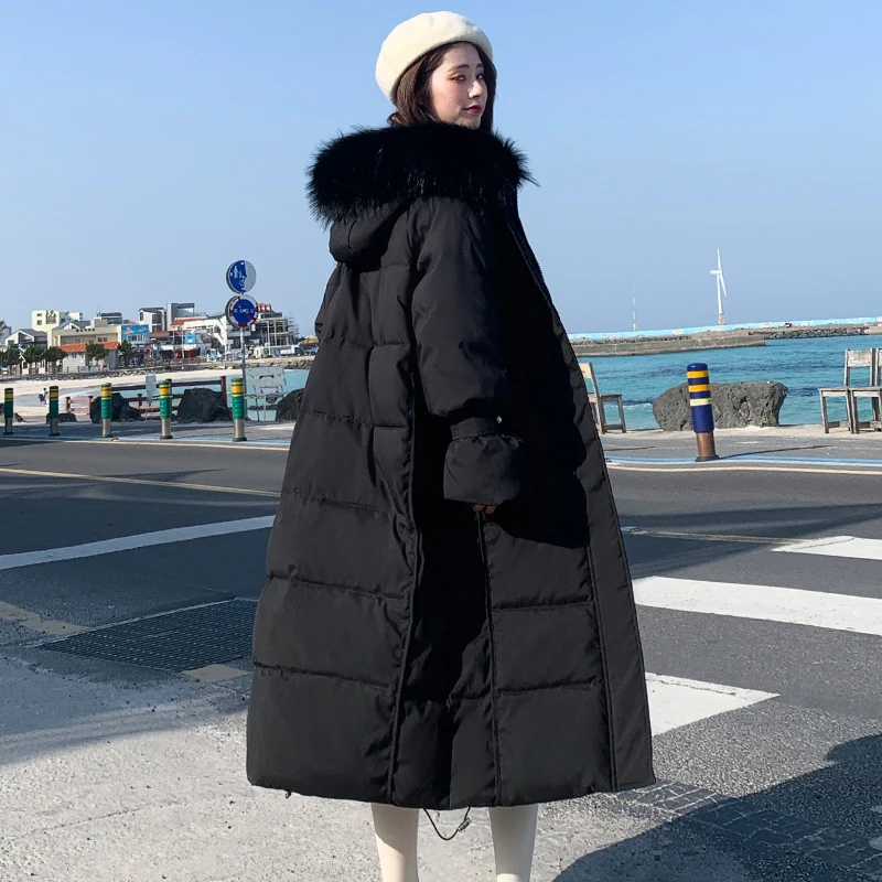 New Korean Style 2019 Winter Jacket Women Hooded With Fur X-long Down Coat Thicken Warm Padded Parka Hi
