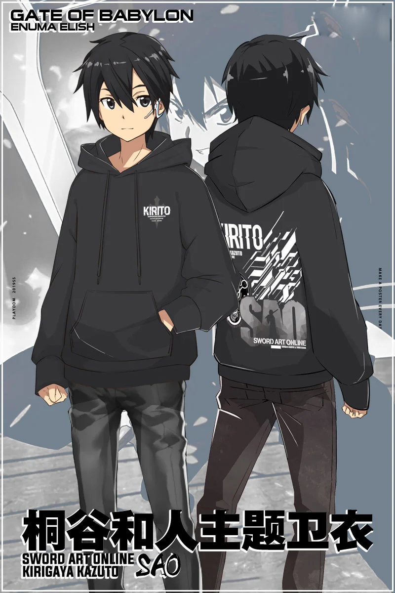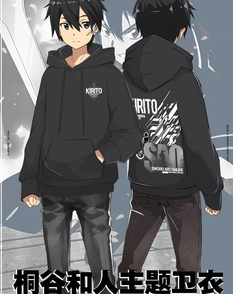 Best Cosplay Kirigaya Kazuto Anime Game Sword Art Online Autumn Winter Men Women Student Coat Hooded pul