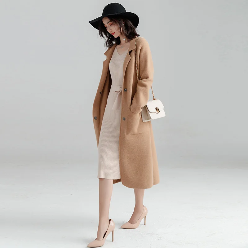 Buy Office Lady Loose Womens Long Coats Outwear Winter Single Breasted Wool Blend Coat And Jacket Turn-