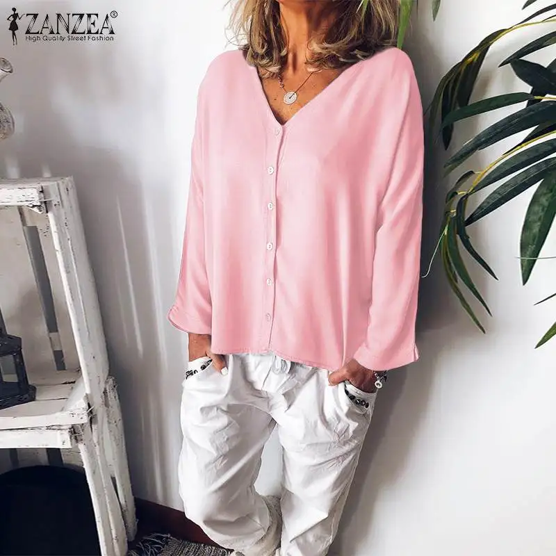 Buy Women Blouse ZANZEA Elegant V neck Long Sleeve Shirts Plus Size Solid Buttons Blusas Femininas Work