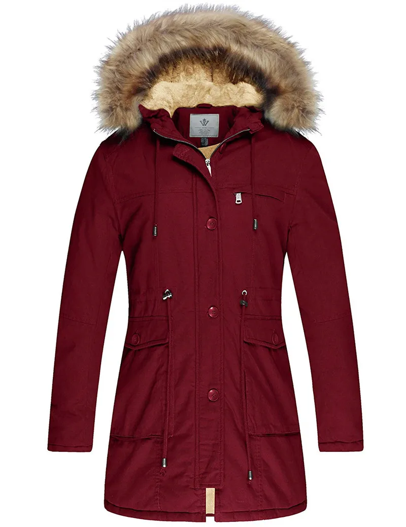 Best Women's Winter Coat Fleece Cotton Military Parka Fur Hooded Jacket