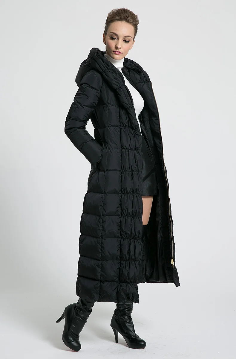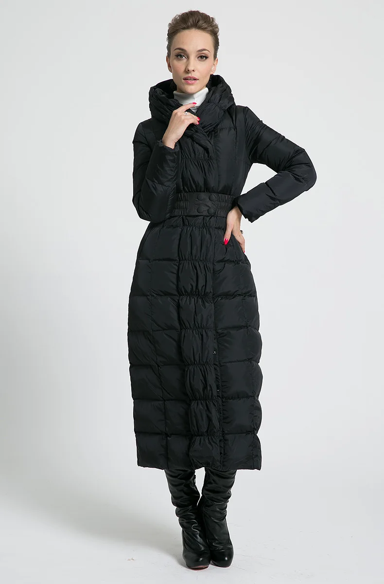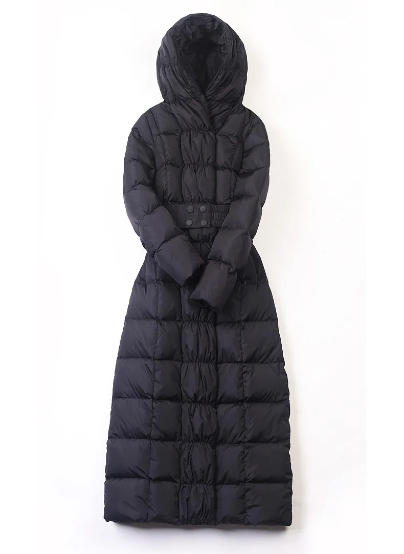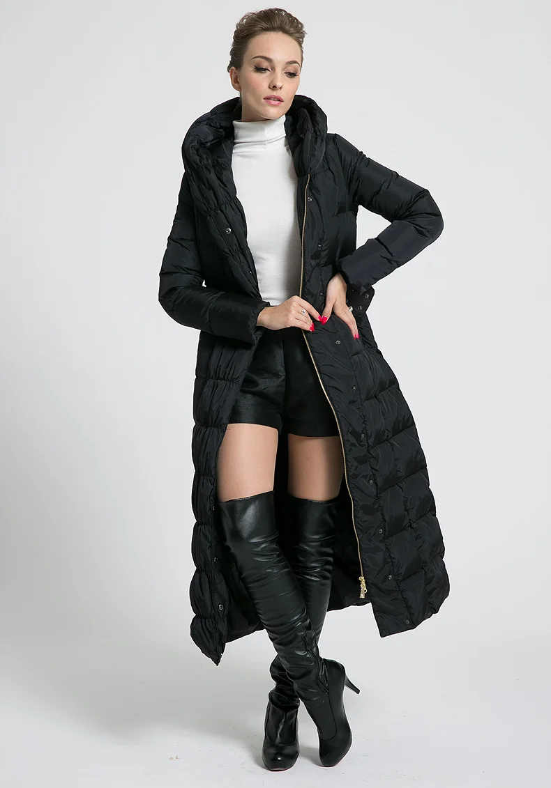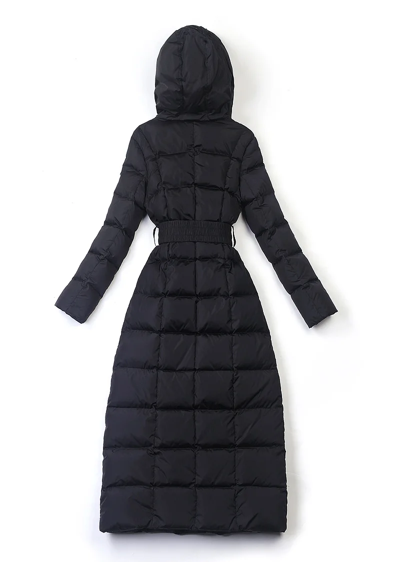 Best 2019 new womens winter Long down jackets hooded belt big size black navy blue plus size thickening