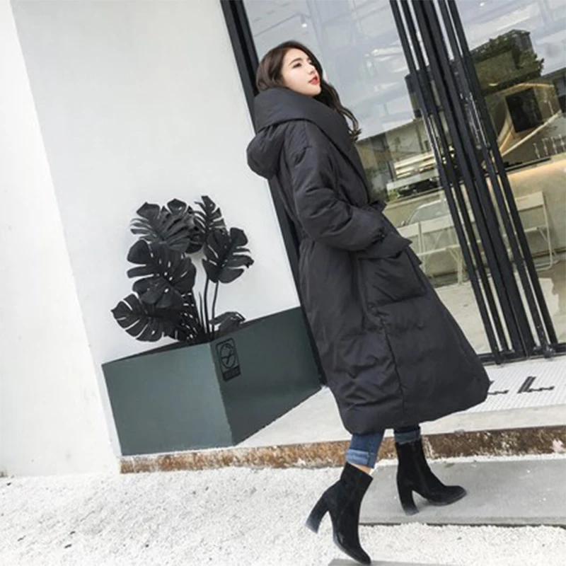 New Fashion No zipper and button adjustable waist thicken and long down jacket women plus size loose an